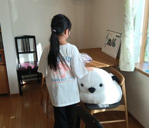 レッスンのお供として、お気に入りのぬいぐるみを度々持って来てくれます。